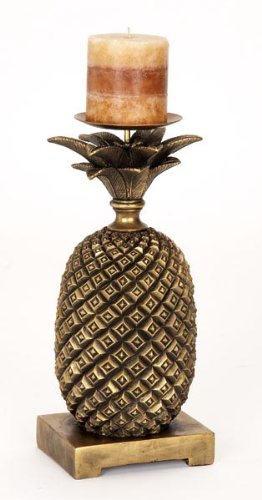 - Bronze-Colored Polyresin Pineapple Candleholder on Base with Metal Pedestal on Top for Holding a Candle.