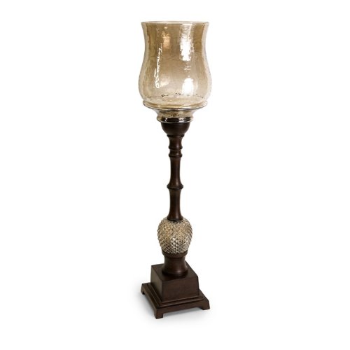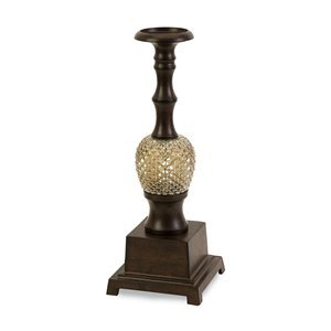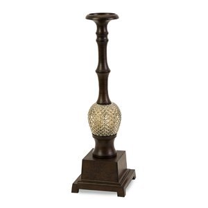 IMAX Features: -Large candle holder. -Rustic brown finish. -Constructed of 95% aluminum and 5% glass. -Carolyn Kinder design. -Simple pineapple focal point. 20041